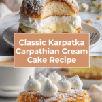 Karpatka, or Carpathian Cream Cake, is a delightful Polish dessert featuring light choux pastry layered with rich, velvety vanilla cream. Its rustic peaks and dusting of powdered sugar make it as charming to look at as it is delicious to eat. Perfect for special occasions or a sweet treat, this cake is sure to impress your family and friends.