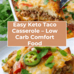 This Keto Taco Casserole is a flavorful and comforting low-carb dish that’s perfect for a satisfying weeknight dinner. Layered with seasoned ground beef, keto-friendly tortillas, creamy cheese, and a touch of spice, it’s easy to prepare and sure to please the whole family.