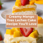 Mango Tres Leches is a tropical twist on the classic Latin American dessert. This moist sponge cake soaked in three kinds of milk gets a luscious mango whipped cream topping that perfectly balances creamy and fruity flavors. It’s a refreshing treat that’s sure to impress.