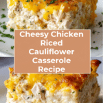 Keywords: chicken casserole, cheesy cauliflower casserole, riced cauliflower recipe, healthy chicken bake, low carb casserole, cheesy chicken bake