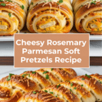 These Mozzarella Stuffed Rosemary Parmesan Soft Pretzels combine the aromatic flavors of fresh rosemary and savory Parmesan cheese with gooey, melted mozzarella inside a soft, chewy pretzel dough. Perfectly boiled in baking soda water and baked to golden perfection, they make a delightful homemade snack or appetizer.