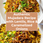 Keywords: Mujadara, Lentils and Rice, Middle Eastern Vegetarian, Vegan Lentil Recipe, Caramelized Onions, Easy Lentil Dish