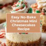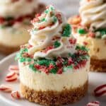 Delight in these festive No-Bake Christmas Mini Cheesecakes, perfect for holiday gatherings. Featuring a buttery graham cracker crust and a creamy, smooth cheesecake filling, these mini treats are easy to make without an oven. Topped with colorful red and green sprinkles, and optionally crushed candy canes, they bring holiday cheer and rich flavor in every bite.