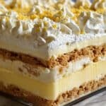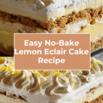 This No-Bake Lemon Eclair Cake is a delightfully tangy and creamy dessert that’s perfect for warm days or when you want a fuss-free treat. Layers of graham crackers and lemon pudding come together to create a refreshing, easy-to-make cake that everyone will love.