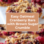These delicious Oatmeal Cranberry Bars combine a buttery, crumbly oat base with tart cranberries and a sweet cinnamon brown sugar crumble topping. Perfect for a snack, breakfast treat, or dessert, they are easy to make and bake into a flavorful, wholesome bar.