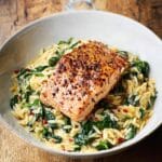 - Make sure not to overcook the salmon during searing as it will finish cooking in the skillet with the orzo.