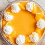 - Add toppings and serve: Once chilled, top the pie with aerosol whipped cream and garnish with fresh orange slices. Slice, serve, and enjoy your citrusy dessert!