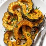 Keywords: parmesan roasted acorn squash, herb roasted squash, baked acorn squash, easy squash side dish, fall vegetable recipe