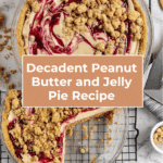 This Peanut Butter and Jelly Pie combines rich peanut butter flavors with a tart raspberry jelly filling, layered in a crunchy peanut butter cookie crust and topped with buttery peanut butter crumbs. It’s a no-bake creamy dessert that swirls together fruity and nutty tastes for a nostalgic twist on a classic sandwich in a pie form.