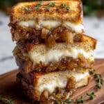 This Pear & Apple Grilled Cheese with Caramelized Onions is a delightful twist on a classic sandwich, combining sweet and savory flavors with melted sharp cheddar cheese, tender caramelized onions, and thinly sliced fresh pear and apple, all grilled to golden perfection on sourdough bread.
