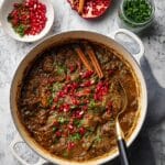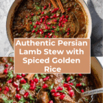 This Persian Lamb Stew is a fragrant and comforting dish bursting with warm spices, tender lamb, and a touch of sweetness from pomegranate molasses and honey. Paired with golden turmeric rice, it makes for an inviting meal perfect for any occasion.