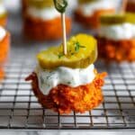 - Assemble and Serve: Thread a piece of fried chicken, a dollop of blue cheese sauce, and a pickle chip onto a toothpick. Repeat with the remaining chicken bites and serve immediately for best texture and flavor.