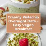 This Pistachio Overnight Oats recipe offers a creamy, delightful, and nutritious start to your day. Blending the rich flavors of pistachio butter with the natural sweetness of maple syrup, quick oats, and chia seeds, this easy no-cook breakfast can be prepared the night before. Topped with non-dairy yogurt, fresh raspberries, and chopped pistachios, it’s a perfect vegan, gluten-free option for a wholesome morning meal.