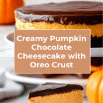 Keywords: Pumpkin cheesecake, chocolate ganache, Oreo crust, autumn dessert, fall recipe, creamy cheesecake, spiced pumpkin, holiday dessert