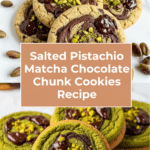 Keywords: Salted pistachio cookies, chocolate chunk cookies, matcha pistachio cookies, homemade cookies, nutty chocolate cookies