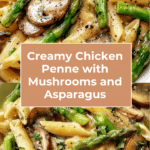 This Savory Chicken Penne with Creamy Mushroom and Asparagus is a rich and comforting pasta dish perfect for any night of the week. Tender chicken, earthy mushrooms, and crisp asparagus come together in a luscious cream sauce that coats every bite.