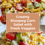 Shoepeg Corn Salad is a refreshing American recipe featuring a creamy dressing tossed with sweet white shoepeg corn, fresh cherry tomatoes, green peppers, and cucumbers. This crisp and flavorful salad is perfect as a side dish or a light meal, especially during warm weather.