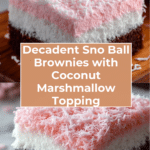 Delicious Sno Ball Brownies feature a rich, fudgy brownie base topped with a luscious marshmallow cream and shredded coconut, creating a sweet, snowy treat perfect for any dessert craving.