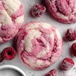 These Soft and Chewy Raspberry Sugar Cookies combine a tender crumb with a fruity burst of raspberry flavor. Rolled in a cinnamon-sugar blend and optionally garnished with fresh raspberries and powdered sugar, they make a delightful treat perfect for any occasion.