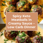 Deliciously bold and low-carb, these Spicy Keto Meatballs in Cream Sauce offer a flavorful and satisfying main dish. Ground beef meatballs are perfectly seasoned with garlic, Parmesan, and red pepper flakes, then browned and baked before being simmered in a rich, creamy sauce made with heavy cream and Italian seasoning. Ideal for keto followers and anyone seeking a hearty, flavorful meal with minimal carbs.