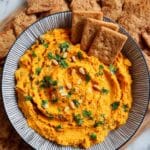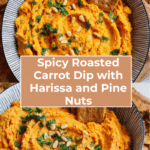 This Spicy Roasted Carrot Dip is a vibrant and flavorful spread made by roasting sweet carrots and blending them with yogurt, garlic, harissa paste, and toasted pine nuts. A perfect appetizer or snack, it offers a delightful balance of smoky sweetness and a spicy kick, ideal for serving with pita chips or fresh veggies.
