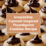 These Sweet Italian Triumph Thumbprint Cookies are inspired by the classic flavors of cannoli, featuring a tender, buttery cookie base filled with a luscious ricotta cheese mixture accented with orange zest and mini chocolate chips. Topped with crushed pistachios and a dusting of powdered sugar, these cookies bring an elegant Italian dessert to your home baking.