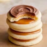 Store the Twix Cookies in an airtight container at room temperature for up to 3 days. For longer storage, keep them in the refrigerator for up to a week, allowing them to come to room temperature before serving. To soften the chocolate layer after refrigeration, let the cookies sit at room temperature for about 30 minutes.
