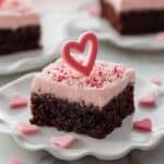 Delightfully fudgy Valentine’s Day brownies topped with a rich and creamy chocolate frosting, perfect for celebrating the day of love with a homemade sweet treat.