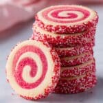 Celebrate Valentine’s Day with these charming and delicious Swirl Cookies featuring a two-tone dough rolled in festive holiday sprinkles. These classic butter cookies combine the perfect balance of sweetness and buttery texture with a beautiful pinwheel design, perfect for gifting or sharing at holiday gatherings.