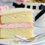 Keywords: White Almond Cake, almond cake recipe, white cake with almond extract, almond buttercream frosting, layered cake, homemade almond cake